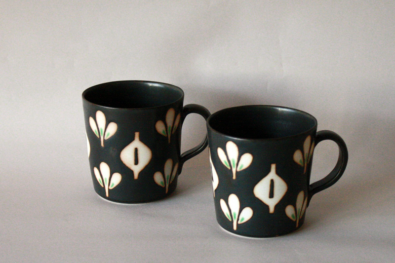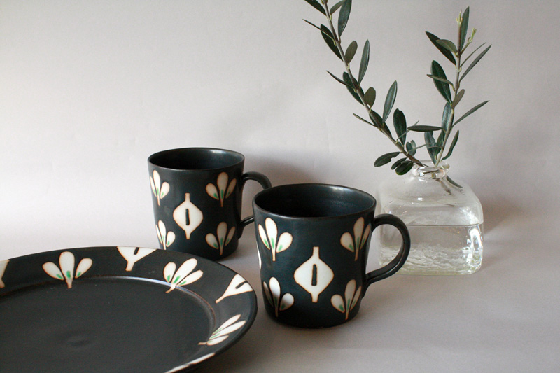 Blog(アップルブログ): 庄田春海「黒みつば」マグと8寸皿が再入荷しました!