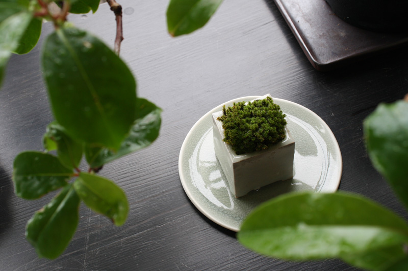 お庭の土の上にお店の周辺の苔をのせて、かわいい苔盆栽を作ってみました!