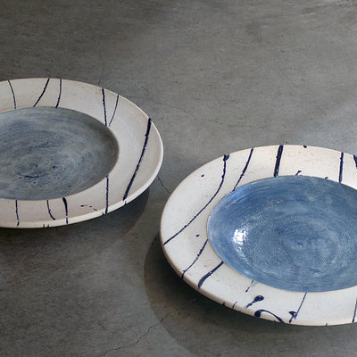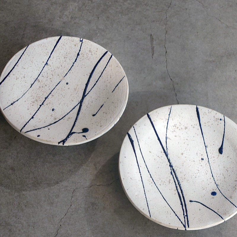 「釉の雨ふり」リム7寸皿・こま皿・花器