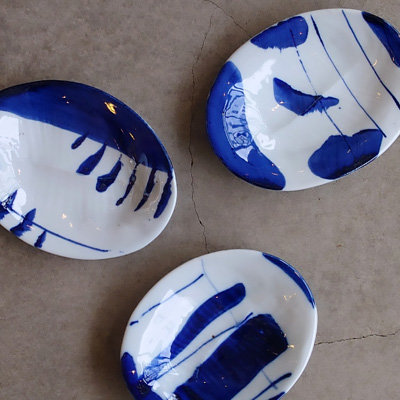 「釉の雨ふり」リム7寸皿・こま皿・花器