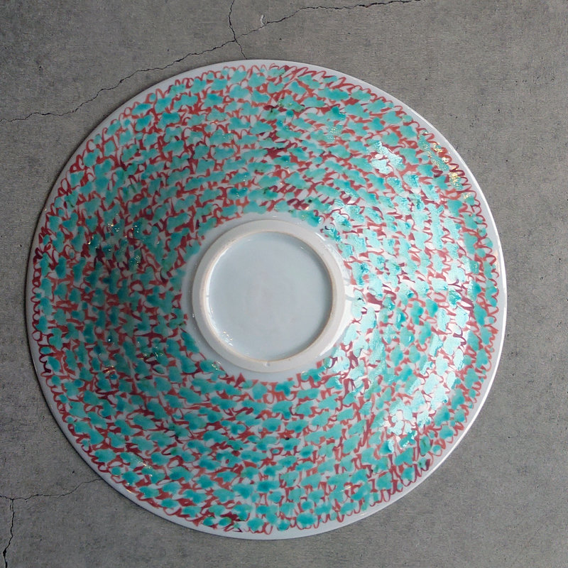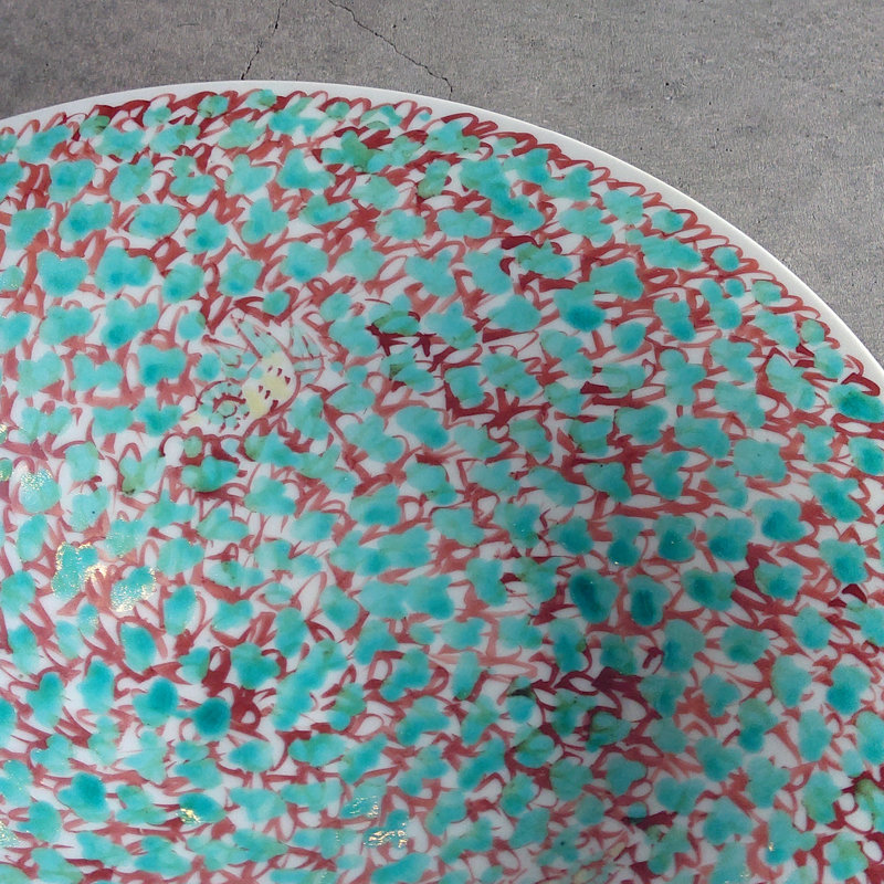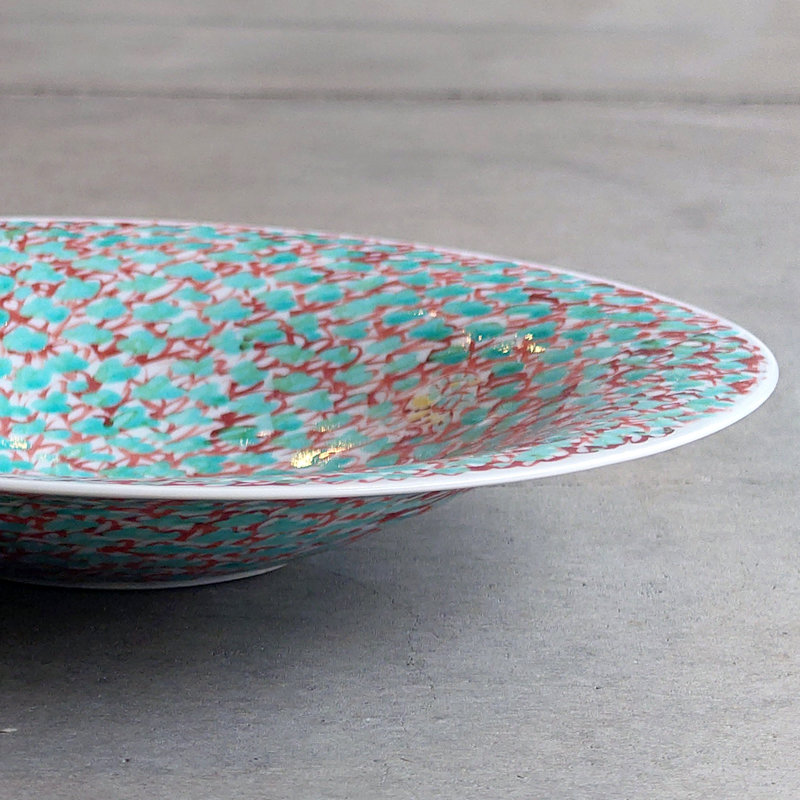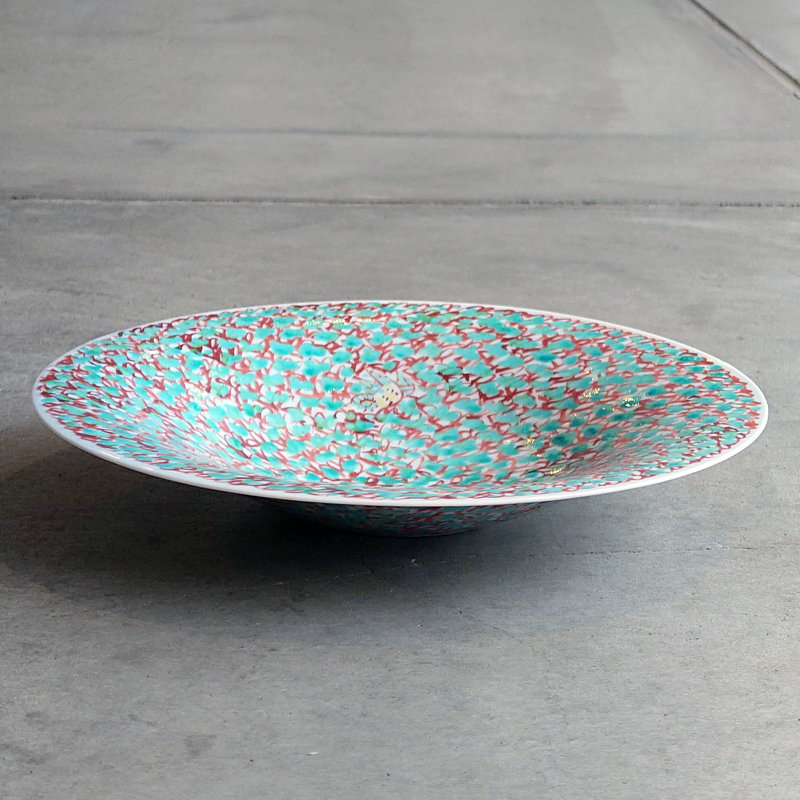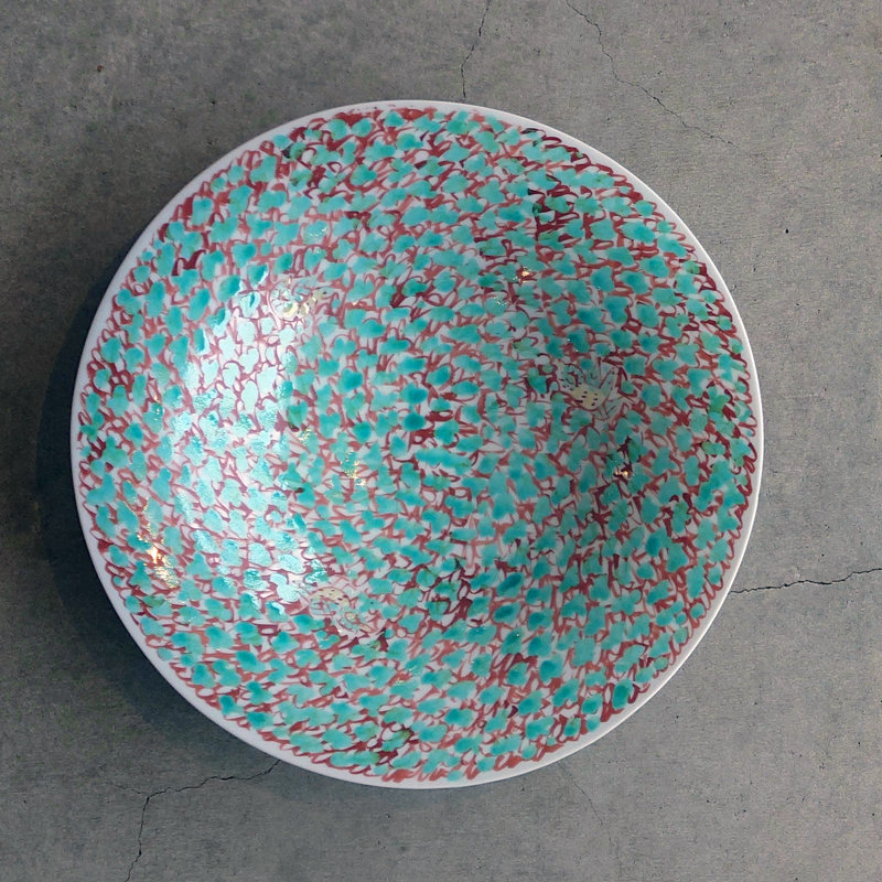 赤地健「緑花詰鳥文」8寸鉢