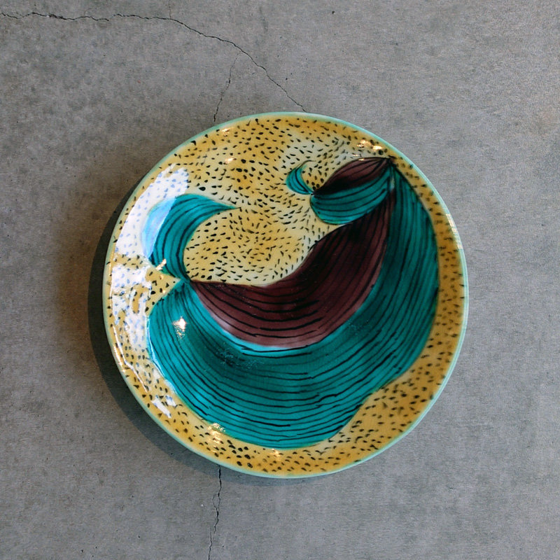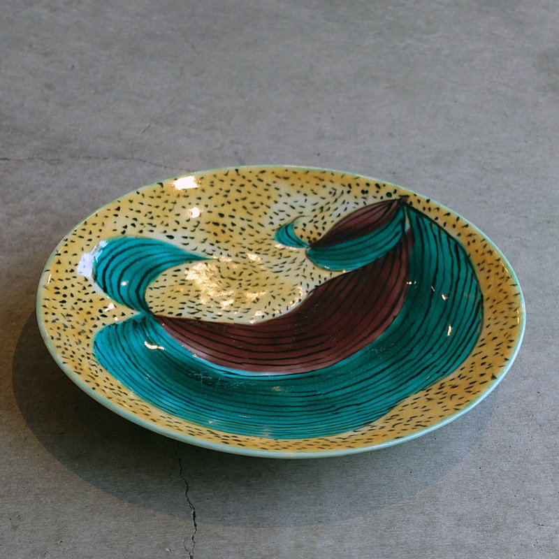赤地健「青手万年青」文皿