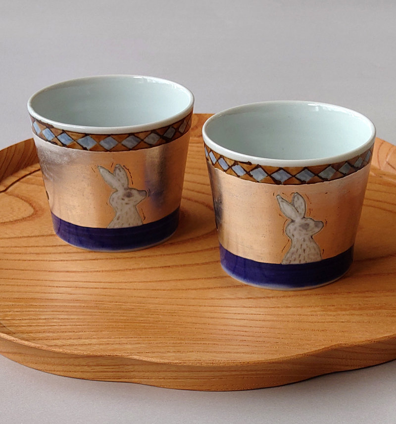 岡本修「銀彩猪口」中/うさぎ