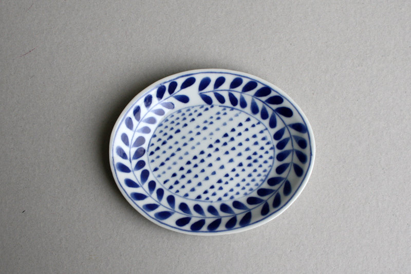 岡本修「染付草文楕円小皿」